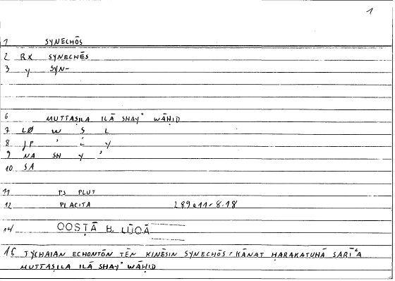 Expressionσυνεχῶςmuttaṣilun ilā šayʾin wāḥidin