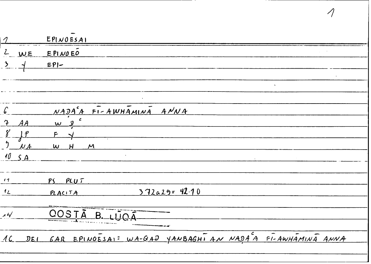 Expressionἐπινοέομαιnaḍaʿa fī awhāminā anna
