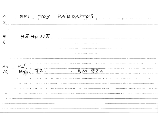 | Expression | ἐπὶ τοῦ παρόντος | hāhunā |