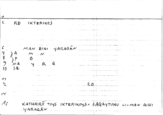 | Expression | οἱ ἰκτερικοί | man bihī yaraqānun |