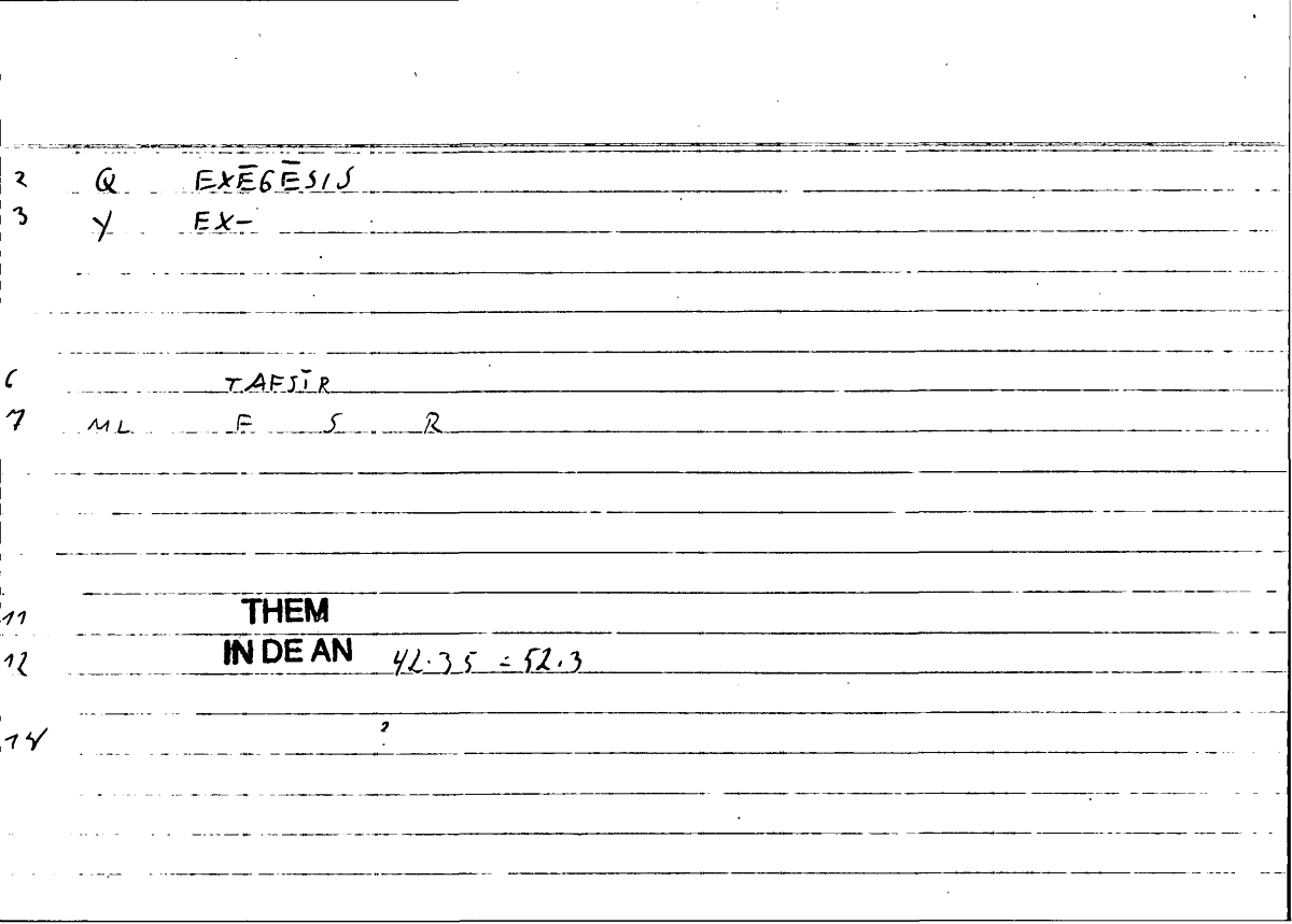 Every record of the glossary holds information on one translated word from Greek into Arabic. The records provide grammatical data and editor's comments as well. The transcription of the references is still in progress. If no reference is given here, you can check open the glossary by clicking on the lemma and consult the original filecard scan.