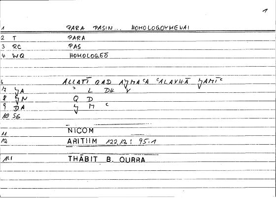 Every record of the glossary holds information on one translated word from Greek into Arabic. The records provide grammatical data and editor's comments as well. The transcription of the references is still in progress. If no reference is given here, you can check open the glossary by clicking on the lemma and consult the original filecard scan.