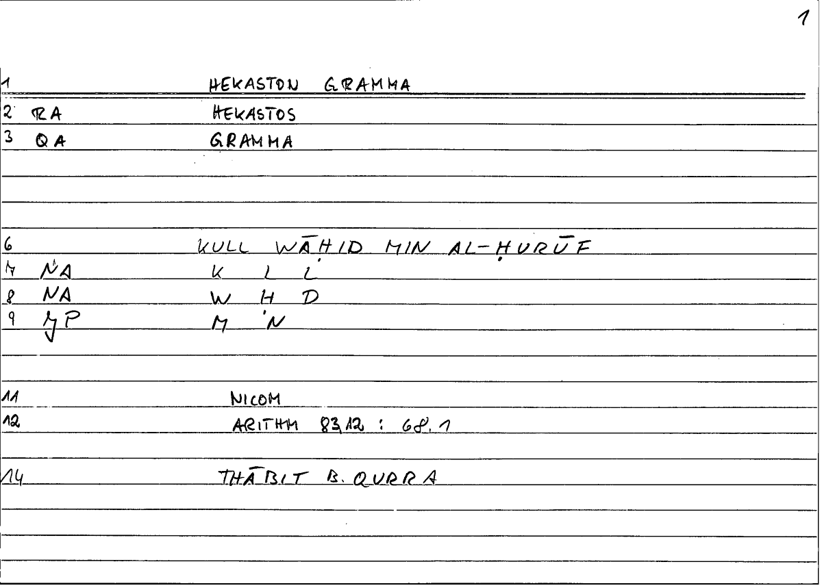 Expressionἕκαστον γράμμαkullu wāḥidin mina l-ḥurūfi