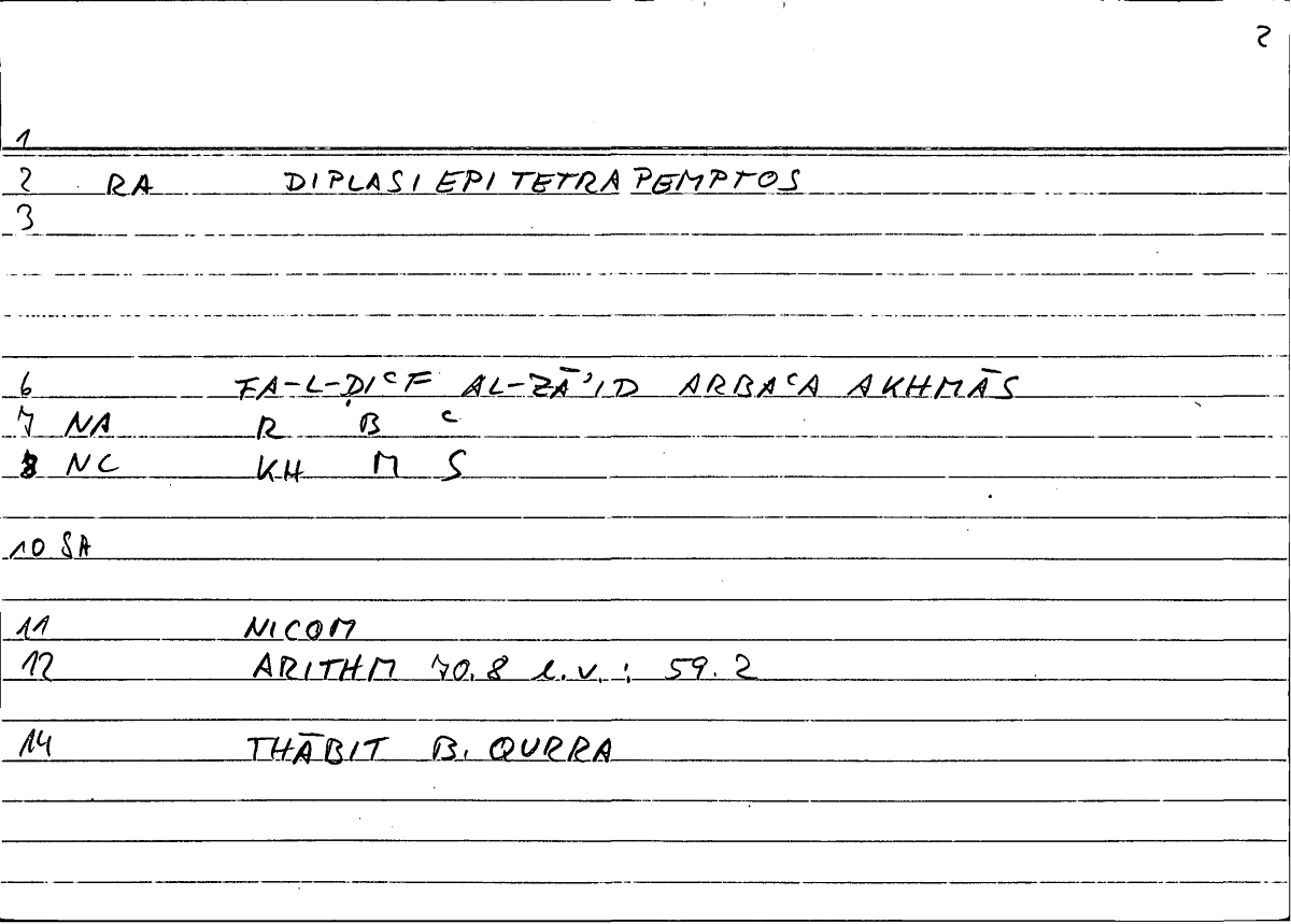 Glossary: διπλασιεπιτετράπεμπος خمس