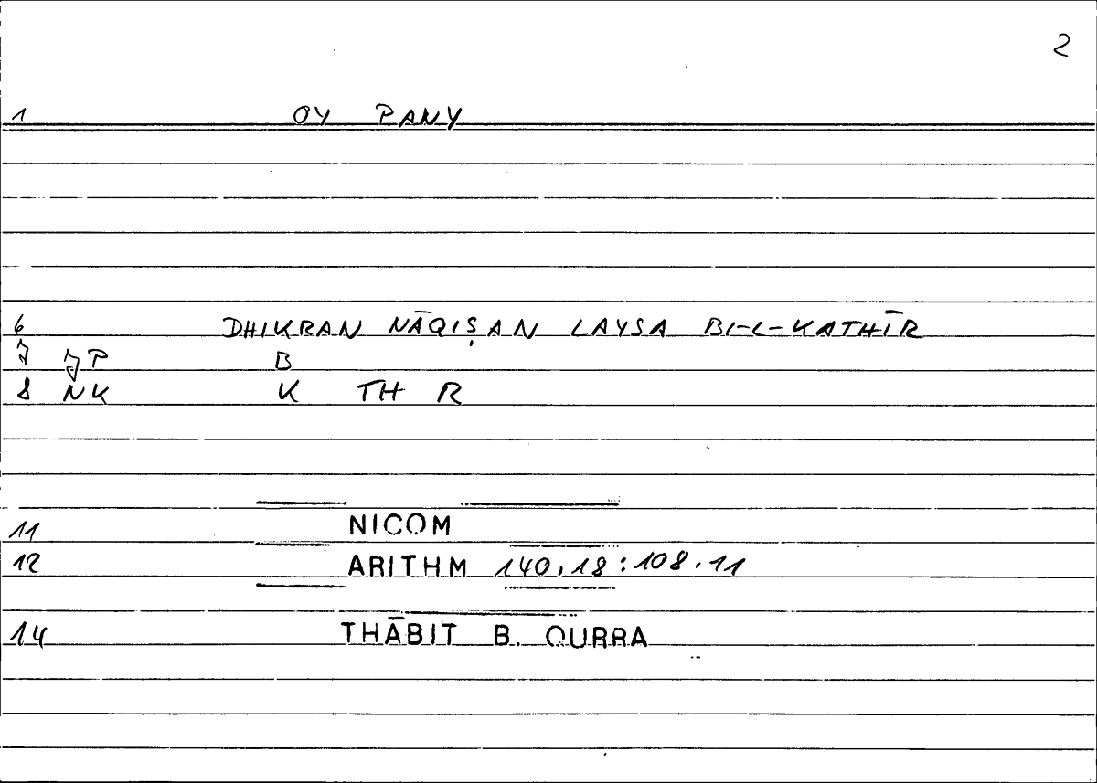 Expressionοὐ πάνυḏikran nāqiṣan laysa bi-l-kaṯīri