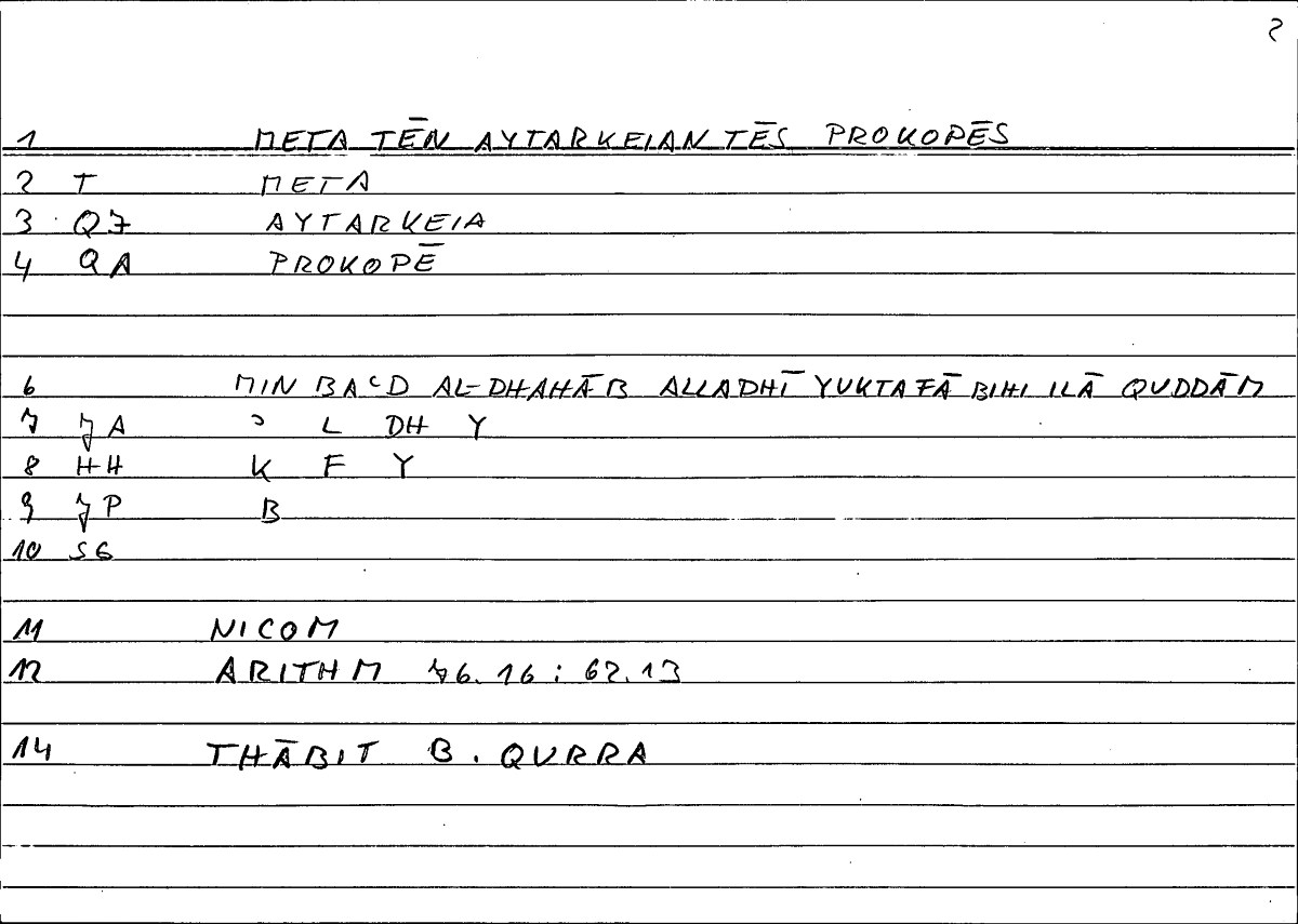 | Expression | μετὰ τὴν αὐτάρκειαν τῆς προκοπῆς | mkin baʿdi l-ḏahābi llaḏī yuktafā bihi ilā quddāmin |