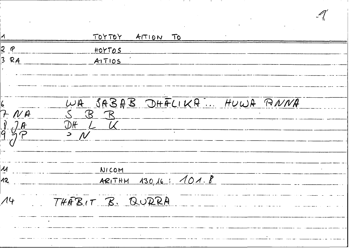 Expressionτούτου αἴτιον τὸwa-sababu ḏālika...huwa anna