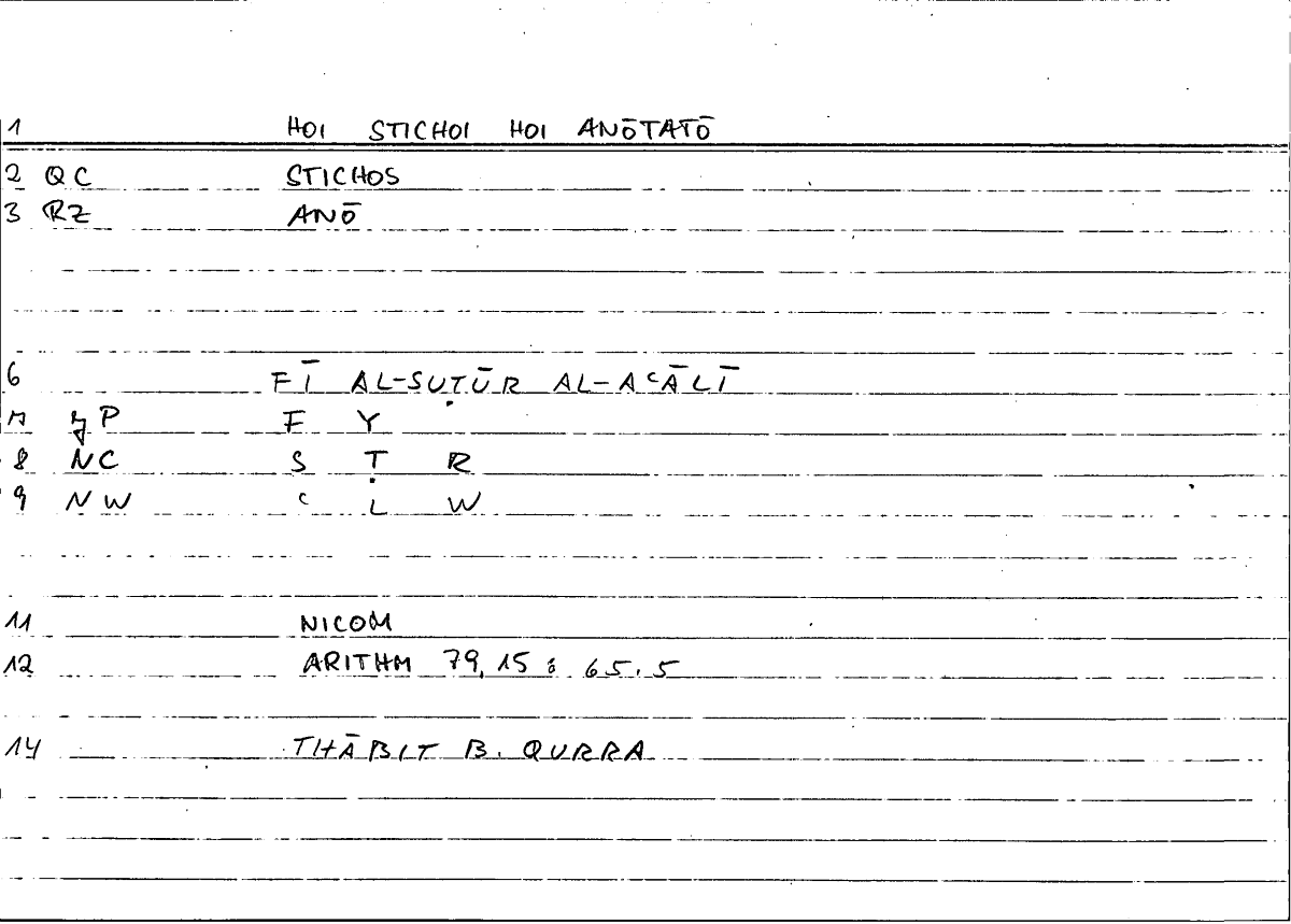 Expressionοἱ στίχοι οἱ ἀνωτάτωfī l-suṭūri l-aʿālī