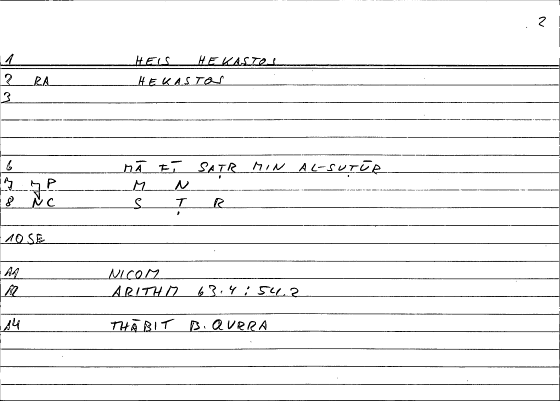 Expressionεἷς ἕκαστοςmā fī saṭrin mina l-suṭūri