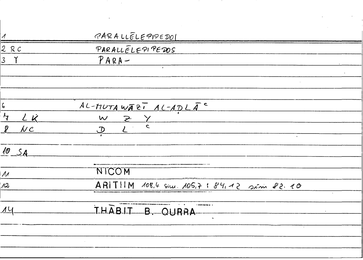 | Lexeme | παραλληλεπίπεδος | ضلع |