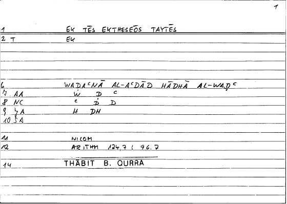 Expressionἐκ τῆς ἐκθέσεως ταύτῃwaḍaʿnā l-aʿdāda hāḏā l-waḍʿ