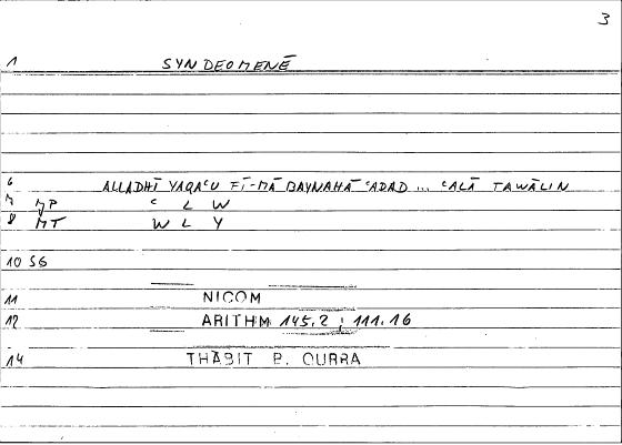 | Expression | συνδεομένη | allaḏī yaqaʿu fī-mā baynahā ʿadadun...ʿalā tawālin |