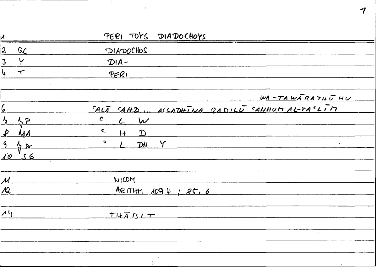 | Expression | περὶ τοὺς διαδόχους | ʿalā ʿahdin...allaḏīna qabilū ʿanhum al-taʿlīmu wa-tawāraṯūhu |