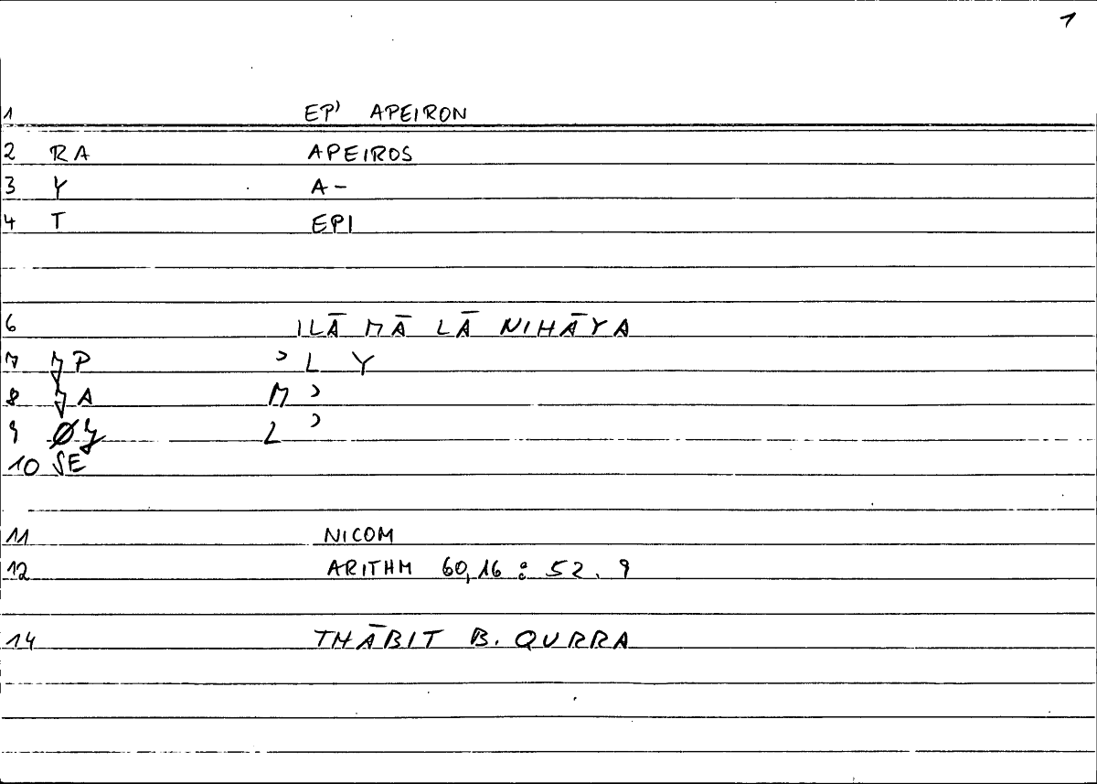 | Expression | ἐπ' ἄπειρον | ilā mā lā nihāyata |