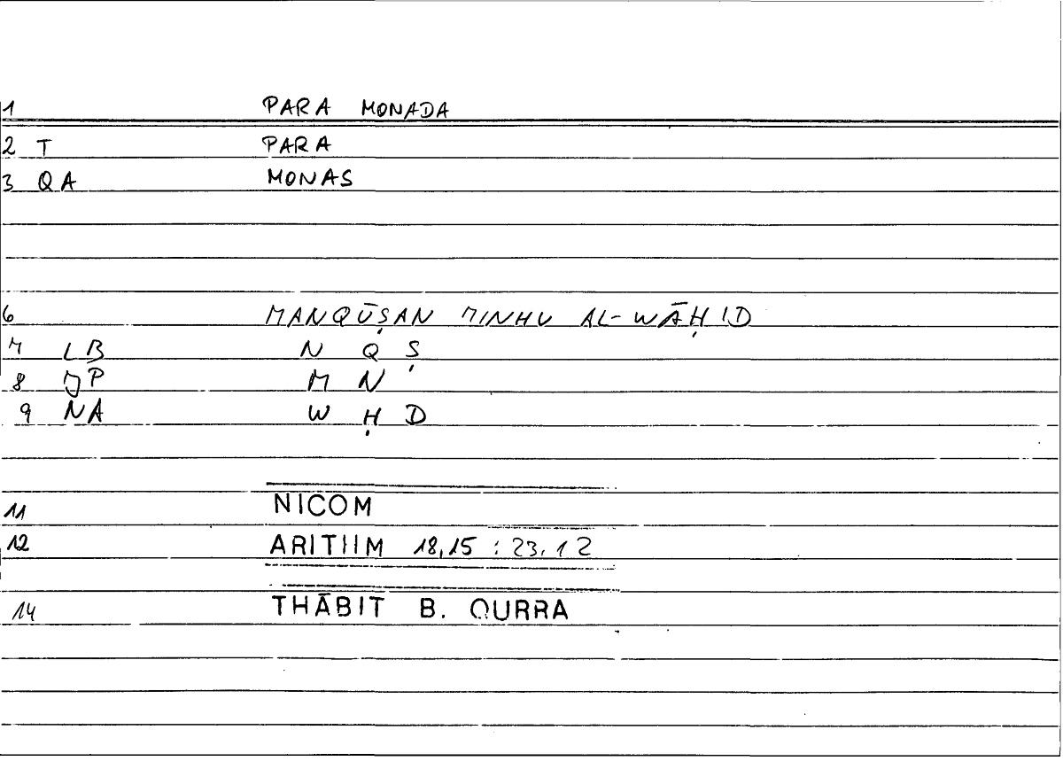 Expressionπαρὰ μονάδαmanqūṣan minhu l-wāḥidu