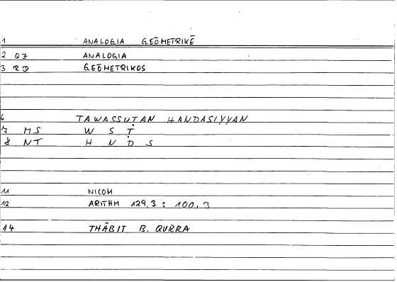 | Expression | ἀναλογία γεωμετρική | tawassuṭan handasiyyan |