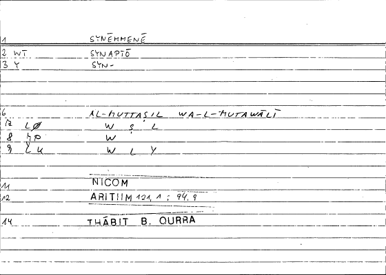 | Expression | συνημμένη | al-muttaṣilu wa-l-mutawālī |