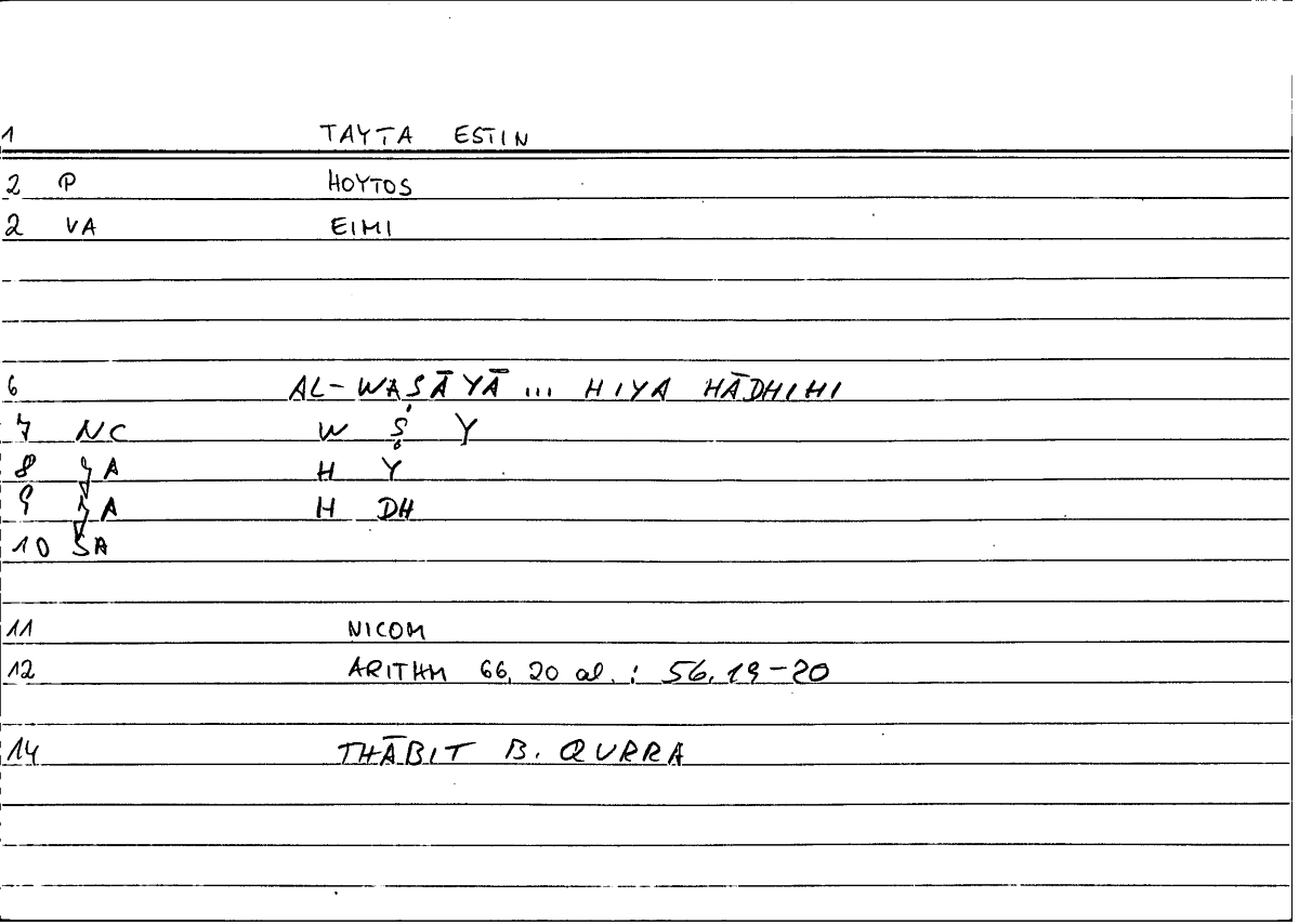 Expressionταυτά ἐστιal-waṣāyā...hiya hāḏihi