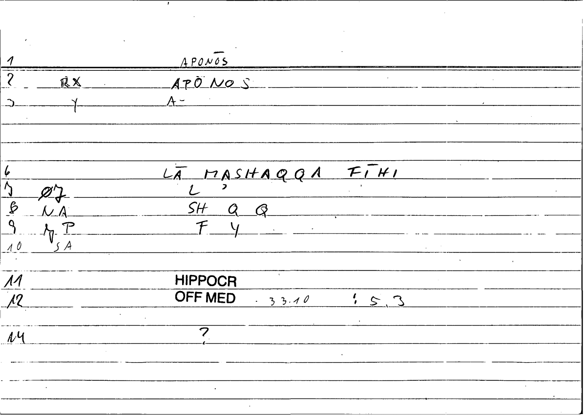 | Expression | ἄπονος | lā mašaqqata fīhi |