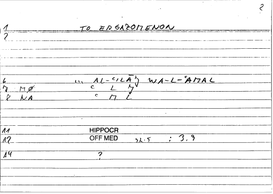 Expressionτὸ ἐργαζόμενον...al-ʿilāǧu wa-l-ʿamalu