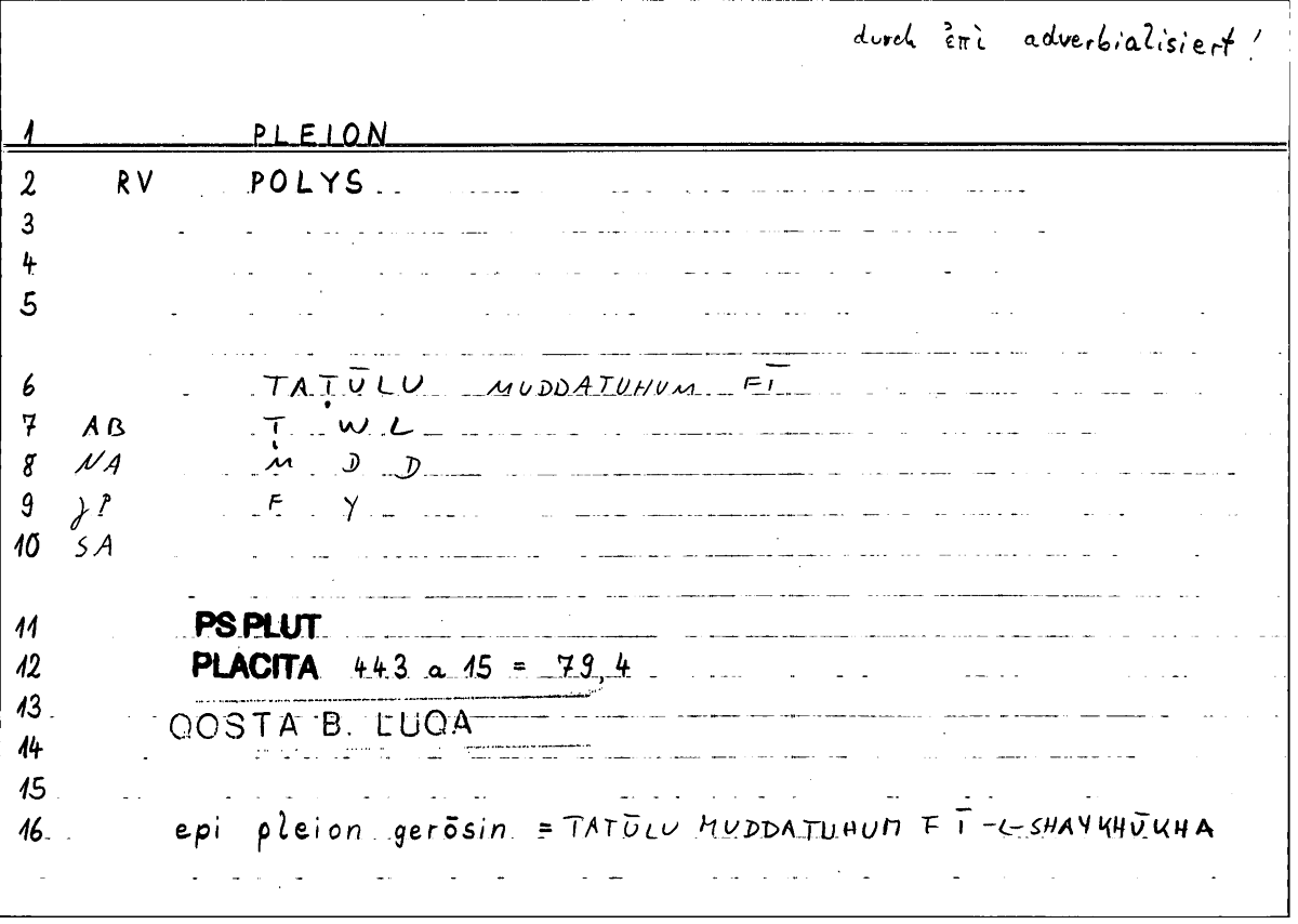 Glossary: πλείων مدّة
