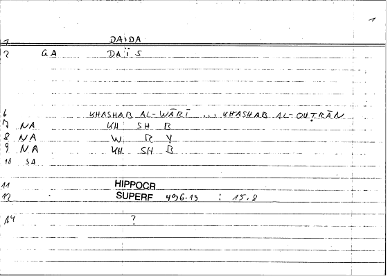 Every record of the glossary holds information on one translated word from Greek into Arabic. The records provide grammatical data and editor's comments as well. The transcription of the references is still in progress. If no reference is given here, you can check open the glossary by clicking on the lemma and consult the original filecard scan.