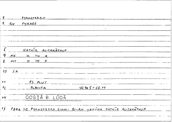 | Expression | πυκνότερος | kaṯīru l-takāṯufi |