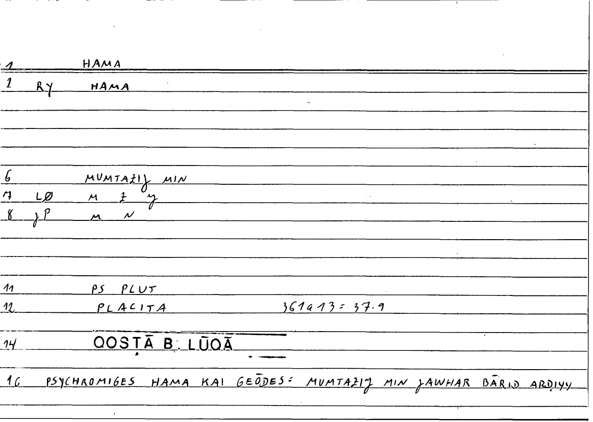 | Expression | τὸ ψυχρομιγὲς ἅμα καὶ γεῶδες | mumtaziǧun min ǧawharin bāridin arḍiyyin |