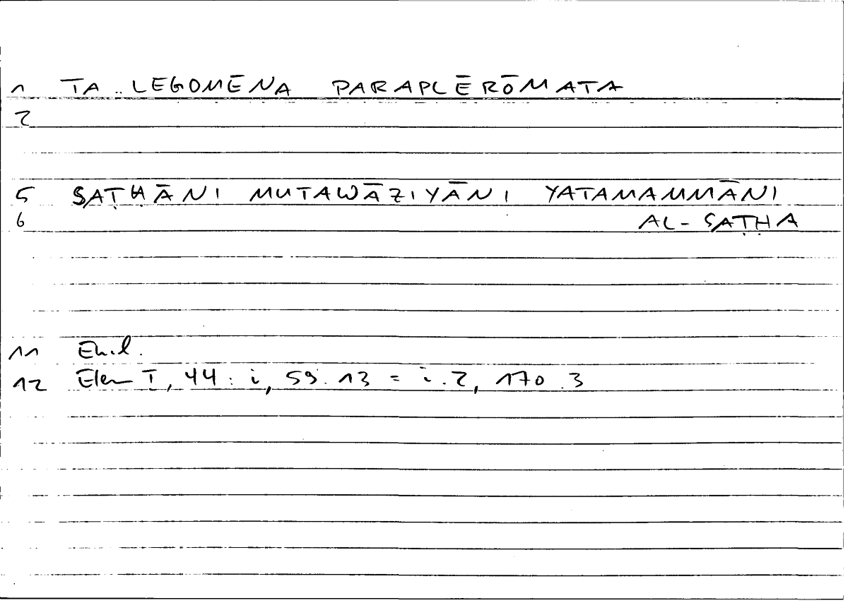 | Expression | τὰ λεγόμενα παραπληρώματα | saṭḥāni mutawāziyāni yatammamāni al-saṭḥa |