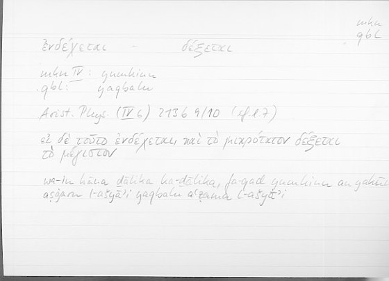 Every record of the glossary holds information on one translated word from Greek into Arabic. The records provide grammatical data and editor's comments as well. The transcription of the references is still in progress. If no reference is given here, you can check open the glossary by clicking on the lemma and consult the original filecard scan.