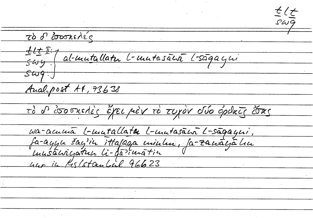 Expressionτὸ δ' ἰσοσκελέςal-muṯallaṯu l-mutasāwī l-sāqayni