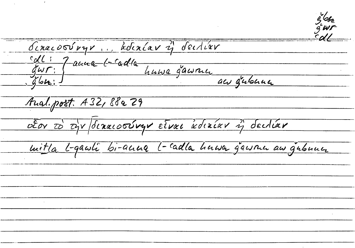 Expressionδικαιοσύνην...ἀδικίαν ἢ δειλίανanna l-ʿadla huwa ǧawrun aw ǧubnun