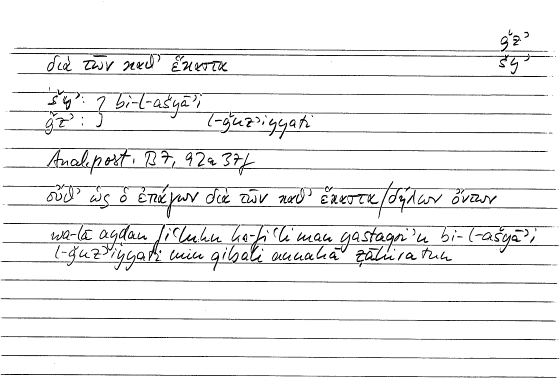 Expressionδιὰ τῶν καθ' ἕκασταbi-l-ašyāʾi l-ǧuzʾiyyati