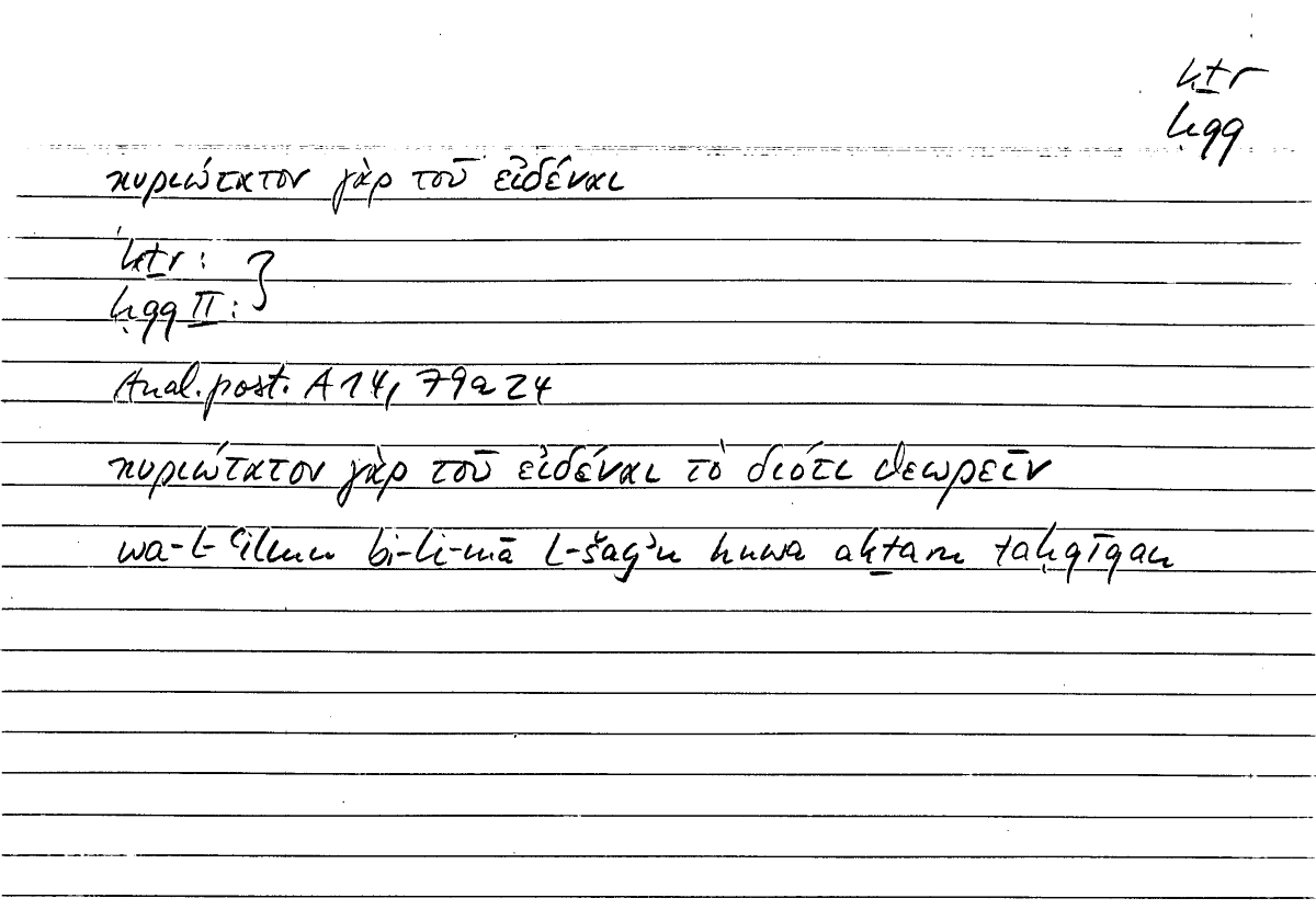 Expressionκυριώτατον γὰρ τοῦ εἰδέναιakṯaru taḥqīqan