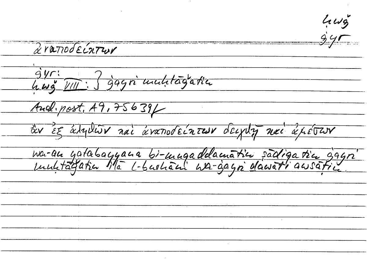 | Lexeme | ἀναπόδεικτος | محتاج |