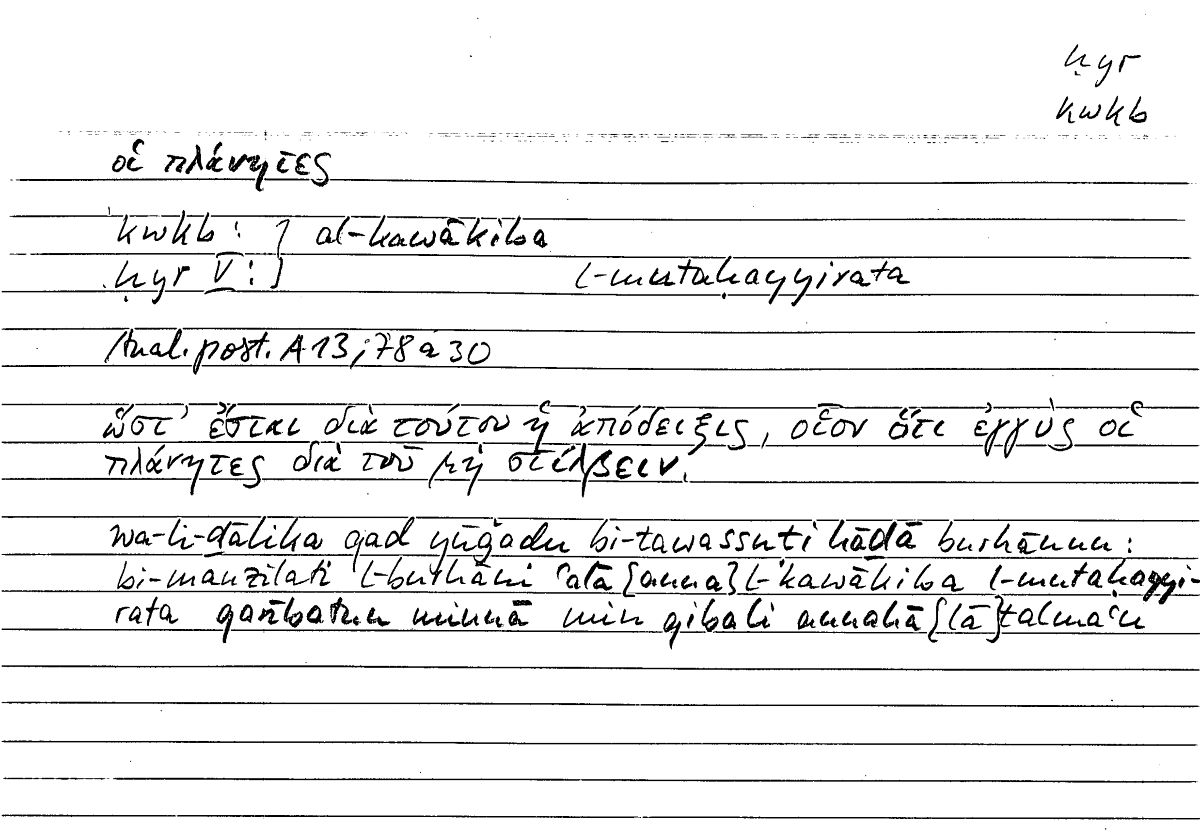 Expressionοἱ πλάνητεςal-kawākiba l-mutaḥayyira