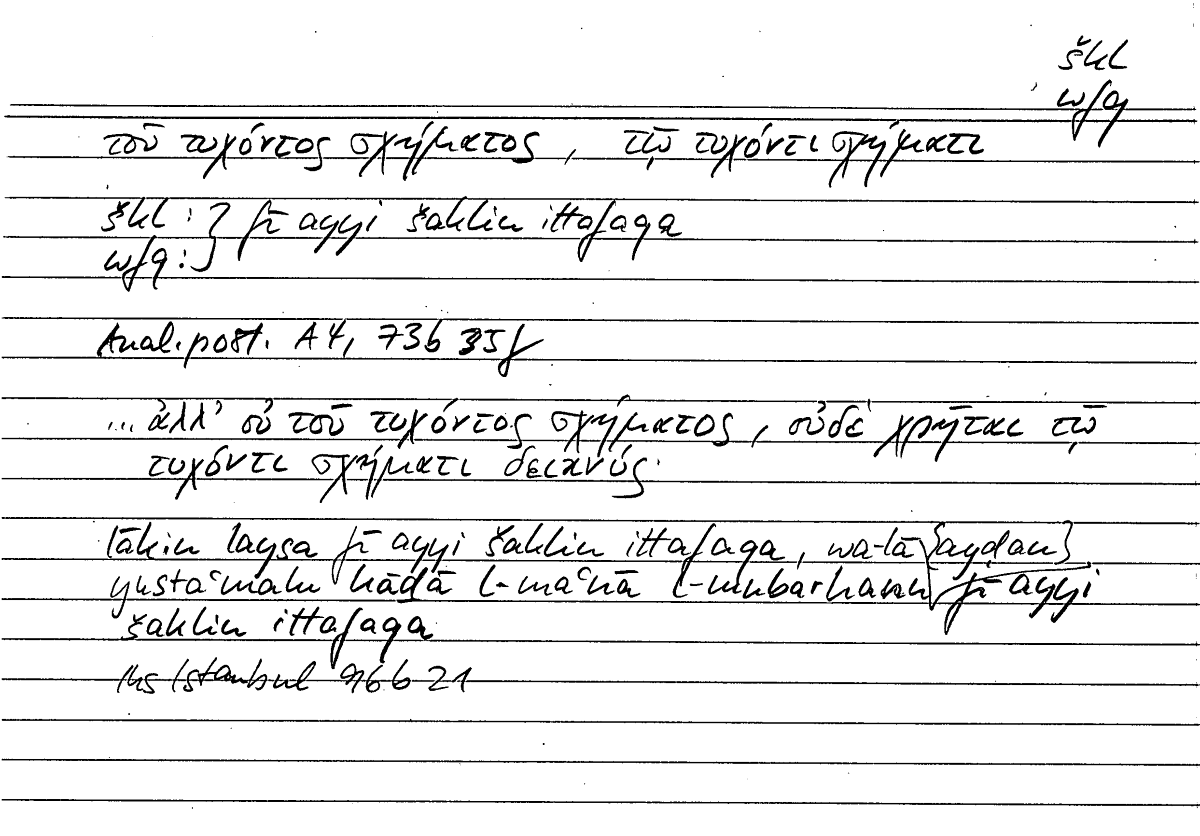 Expressionτοῦ τύχοντος σχήματος, τῷ τυχόντι σχήματιfī ayyi šaklin ittafaqa