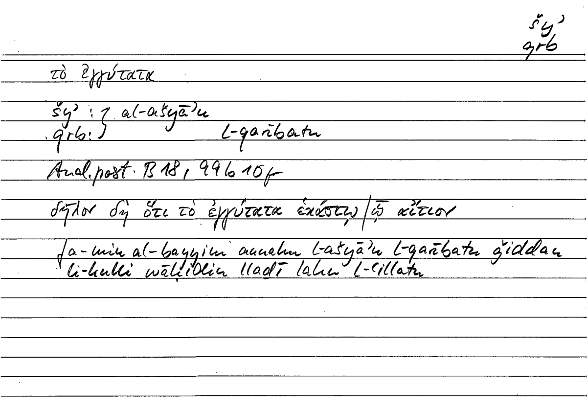 Expressionτὸ ἐγγύταταal-ašyāʾu l-qarībatu