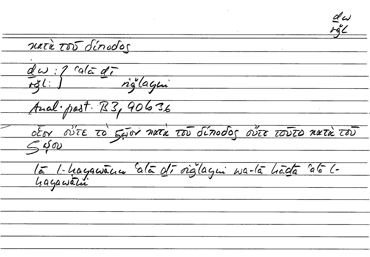 Expressionκατὰ τοῦ δίποδοςʿalā ḏī riǧlayni