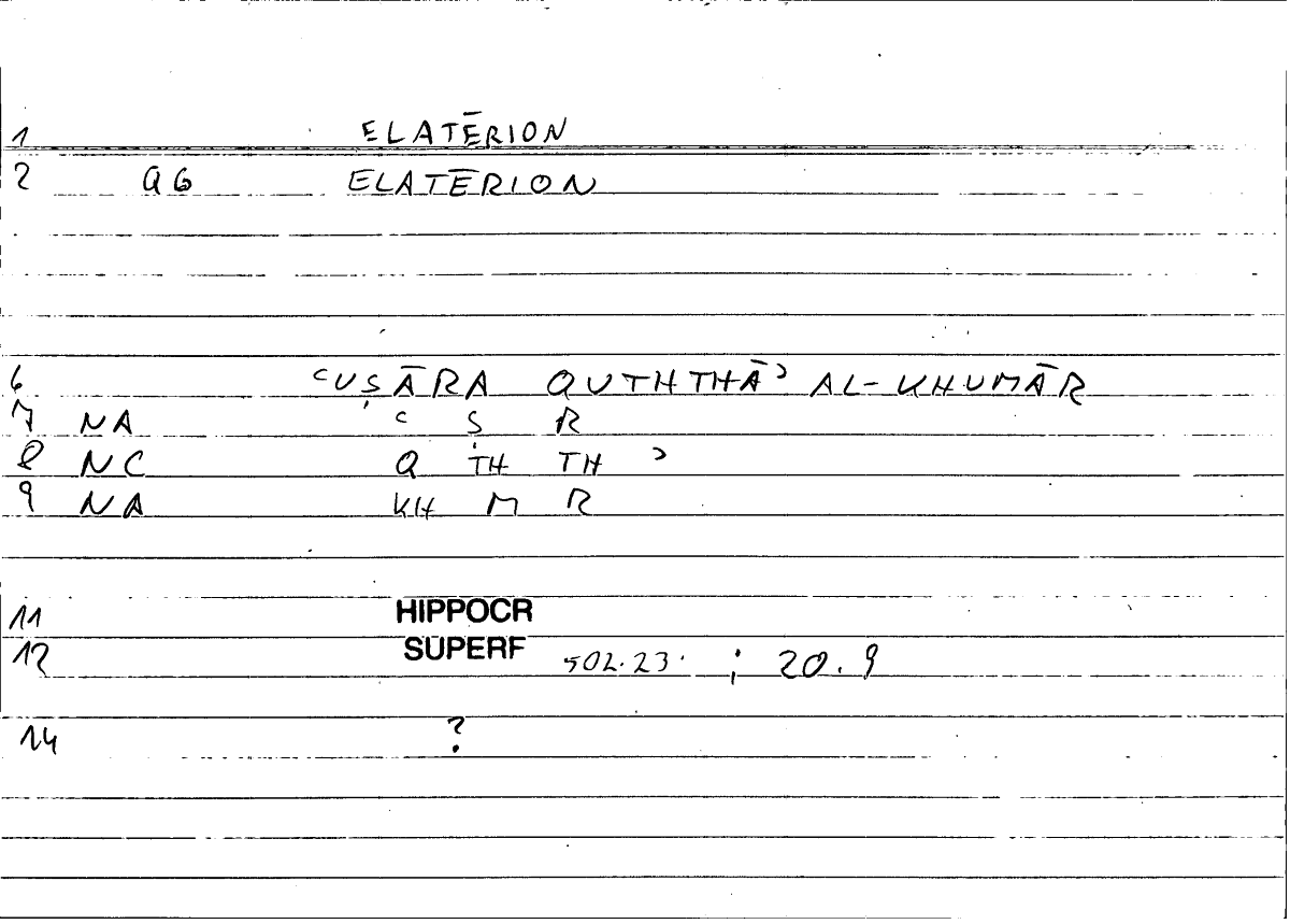 | Expression | ἐλατήριον | ʿuṣāratu quṯṯāʾi l-ḫumāri |