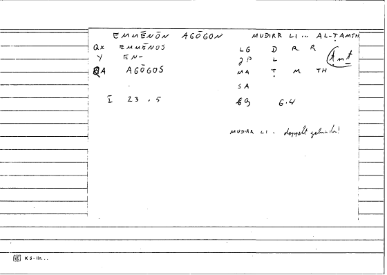 | Lexeme | ἔμμηνος | طمث |