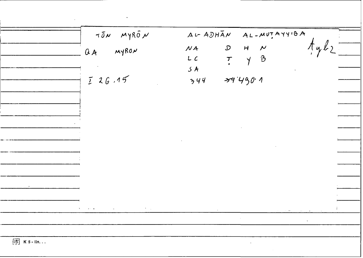 | Expression | εἰς τὰς τῶν μύρων στύψεις | fī l-ṭaʿfīṣi l-adhāni |