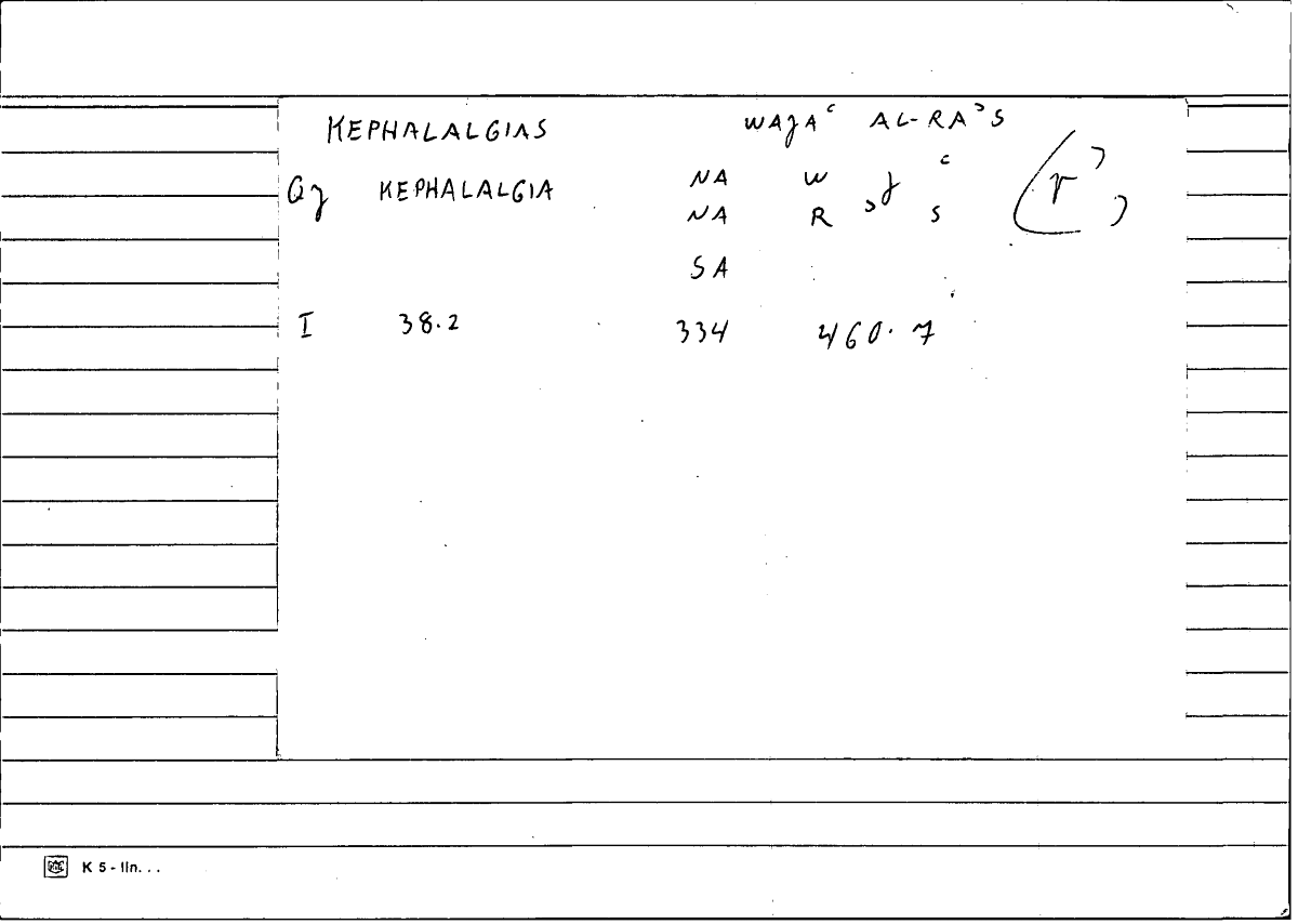 | Annotation | headache | cf. WGAÜ Suppl. I, 551 |