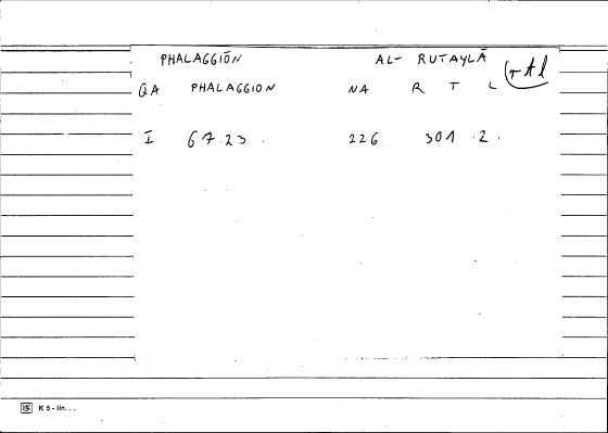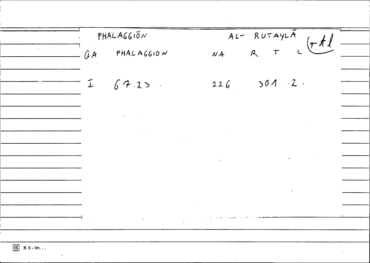 | Lexeme | φαλάγγιον | رُتَيلآء |