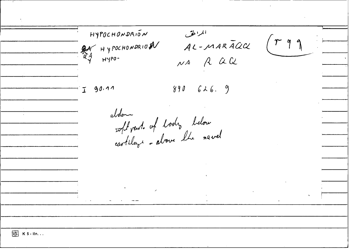 | Lexeme | ὑποχόνδριος | مَراقٌّ |