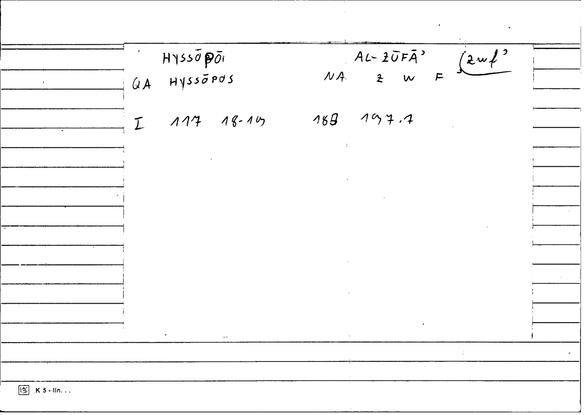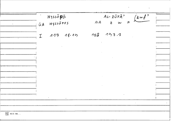 | Annotation | hyssop, Origanum hirtum | cf. WGAÜ Suppl. II, 562 f. |