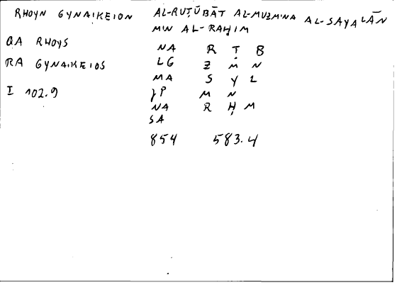 | Expression | ῥόος γυναικεῖος | sayalānu l-ruṭūbāti l-sāʾilati mina l-riḥmi l-muzminati |