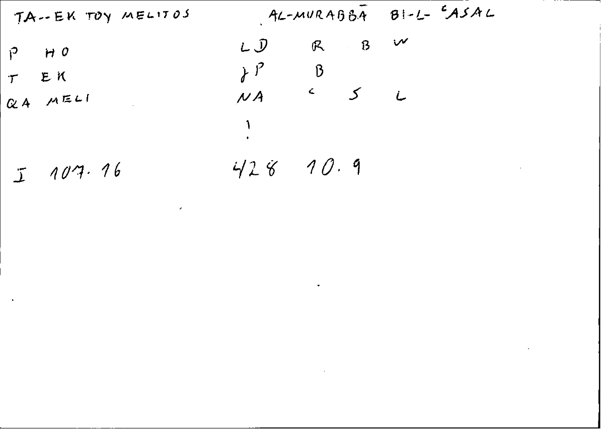 | Expression | τὰ... ἐκ τοῦ μέλιτος | al-murabbā bi-l-ʿasali |