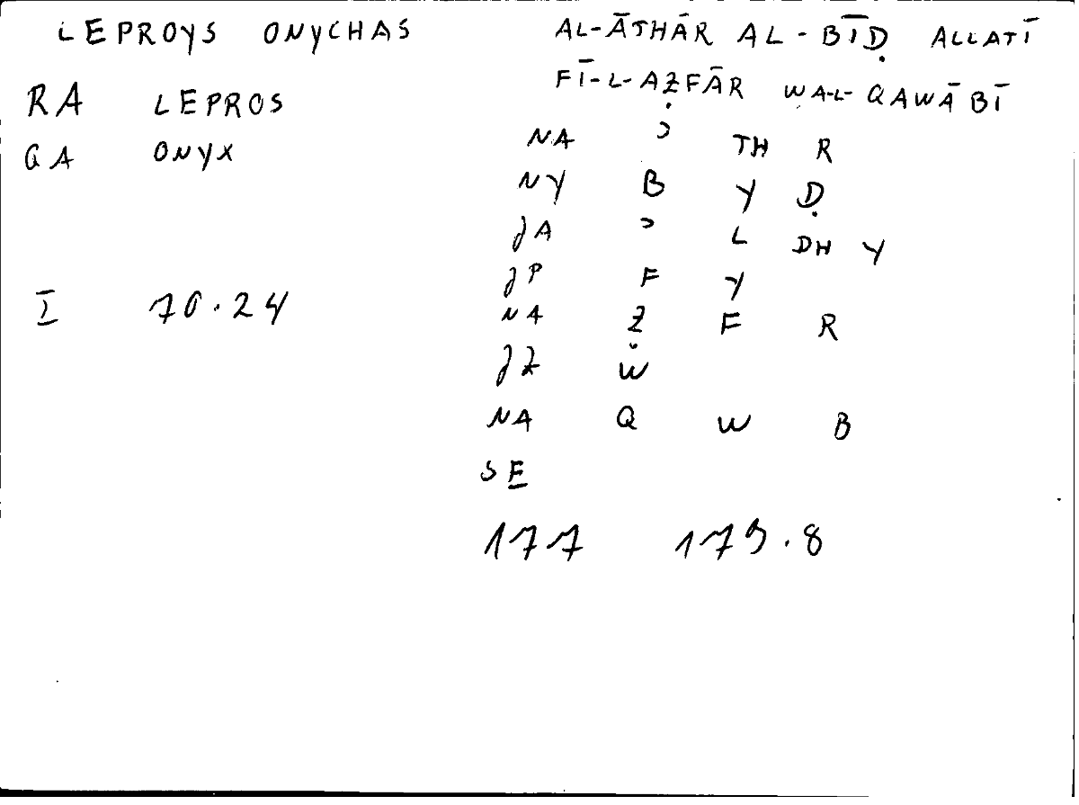 | Expression | λεπροί ὄνυχες | qalaʿu l-aṯāri l-bīḍi l-ʿāriḍatu li-l-aẓfāri wa-qalaʿu l-qawāfī |