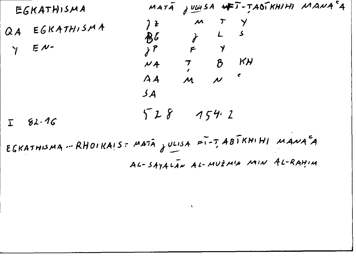 | Expression | – | iḏā ǧalasa (sic) fī ṭabīḫihī |